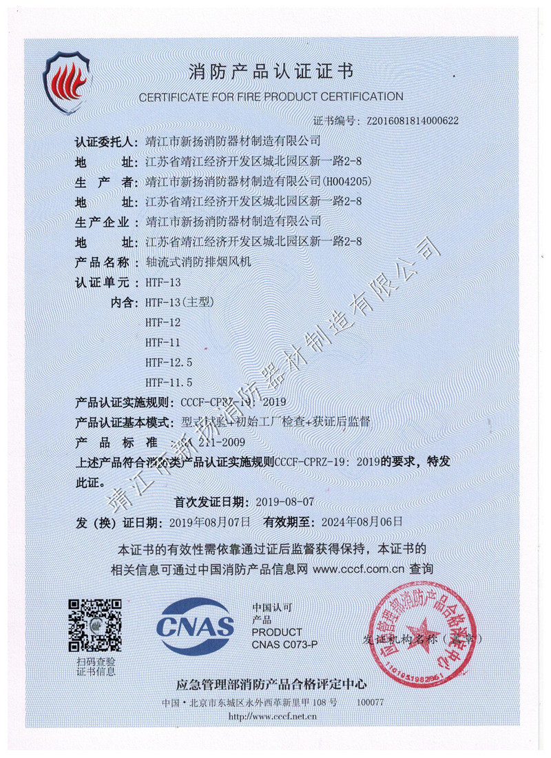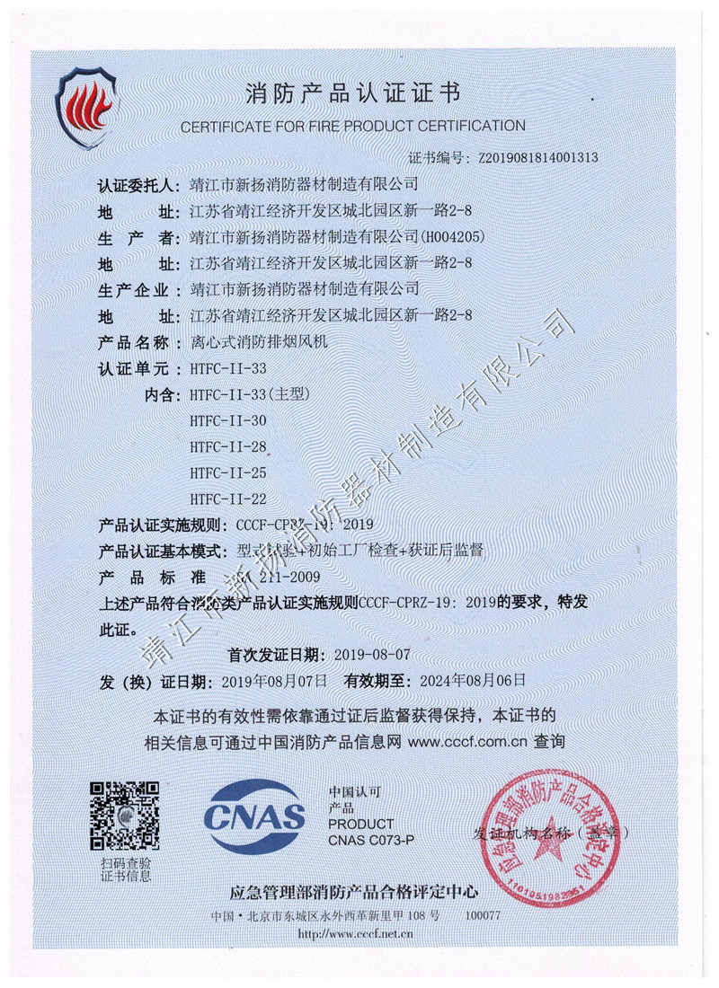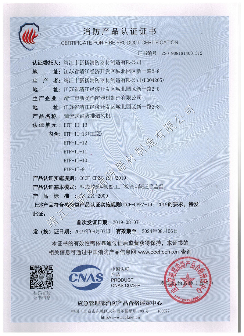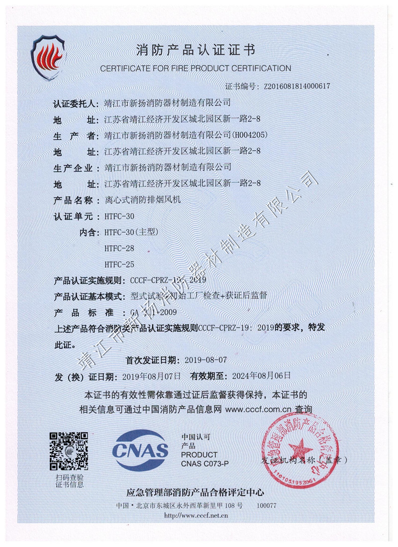 單速風(fēng)機(jī)箱證書(shū)HTFC-30