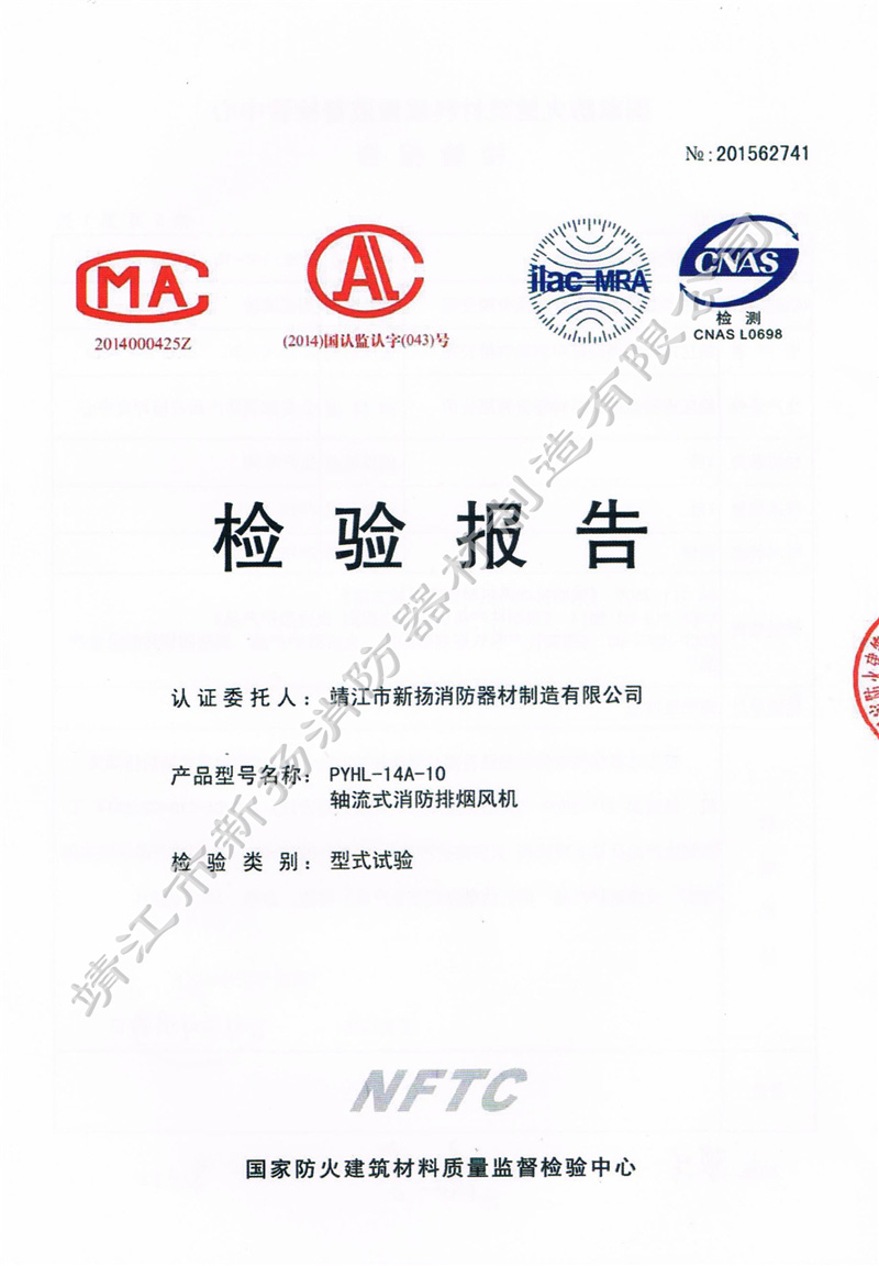 檢測(cè)報(bào)告 軸流式消防排煙風(fēng)機(jī)PYHL-14A-10
