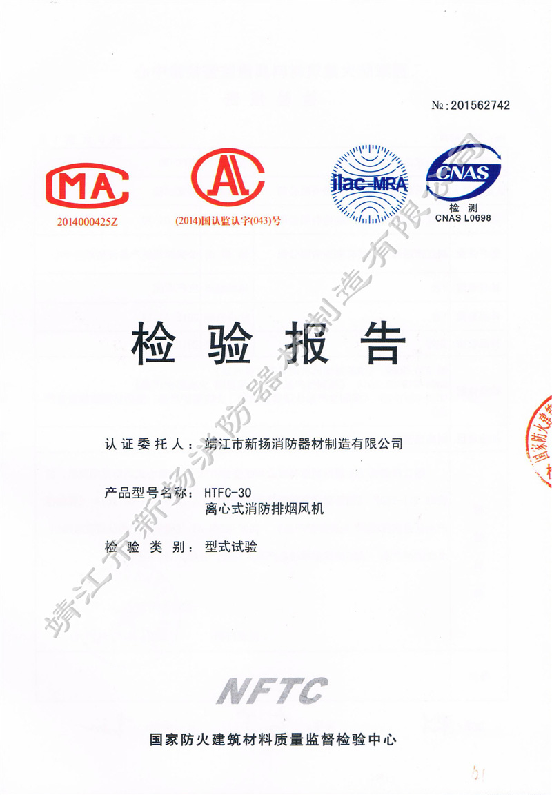 檢測(cè)報(bào)告 離心式消防排煙風(fēng)機(jī)HTFC-30