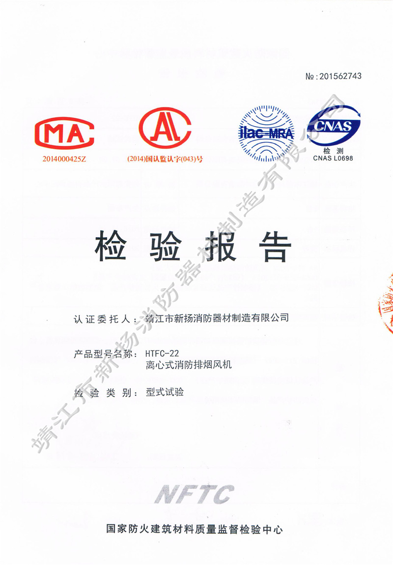 檢測(cè)報(bào)告 離心式消防排煙風(fēng)機(jī)HTFC-22