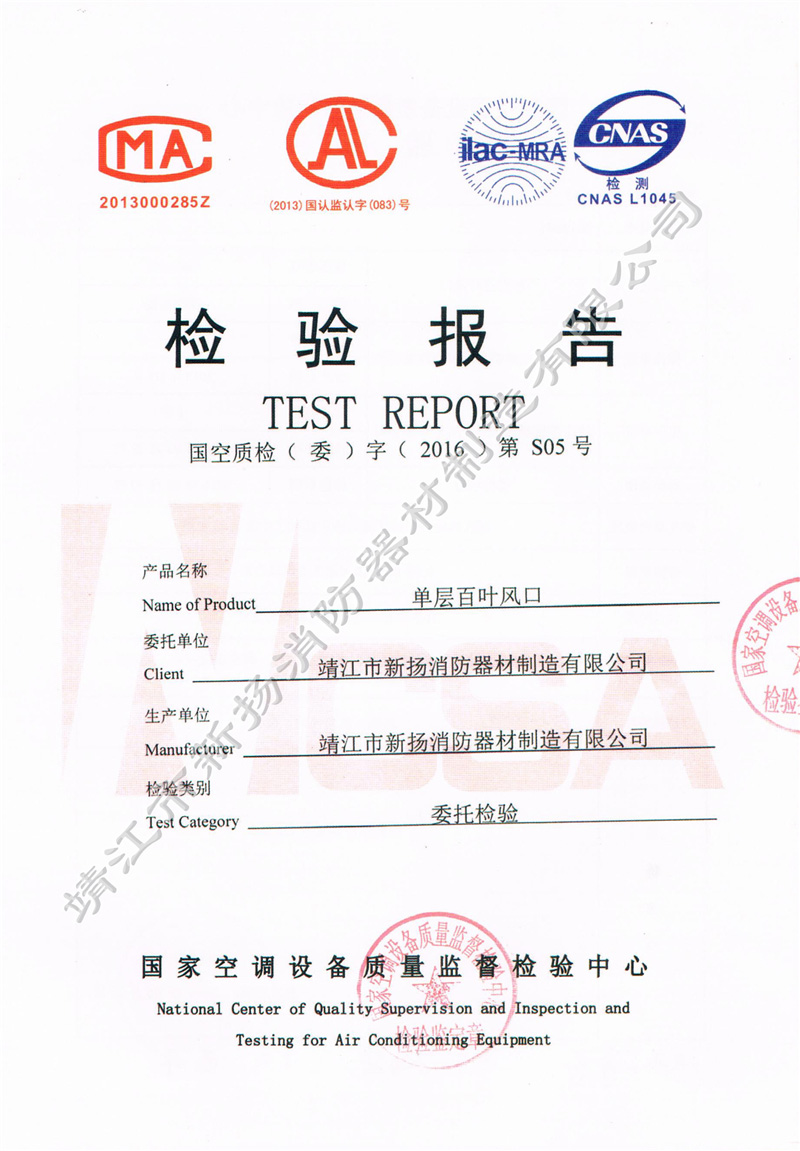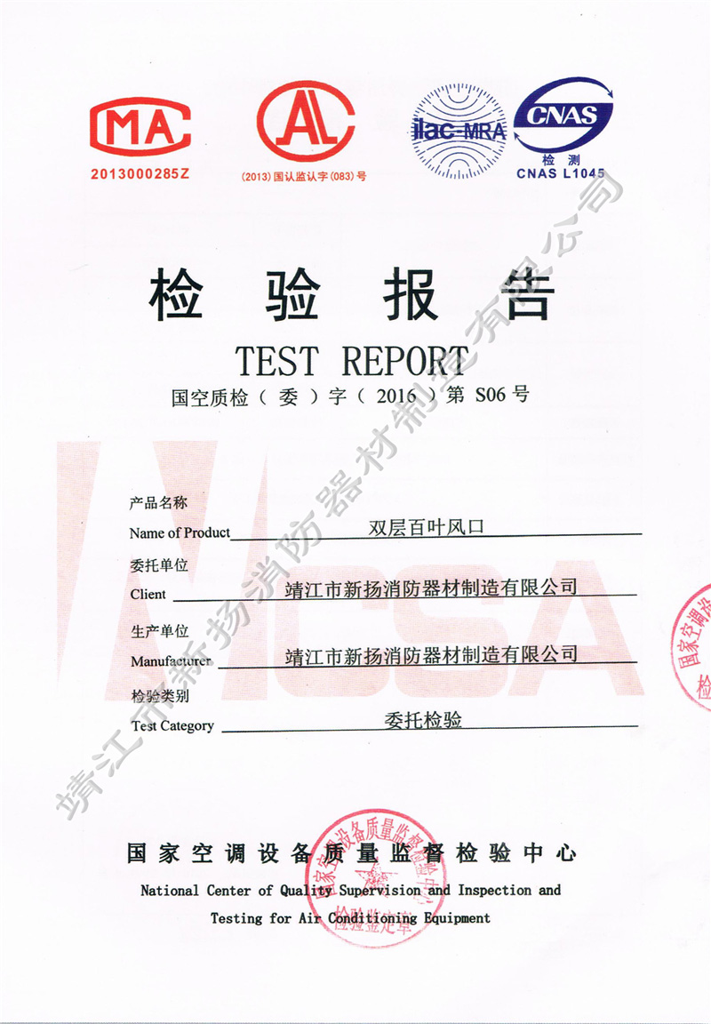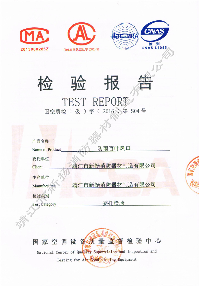檢測(cè)報(bào)告 防雨百葉風(fēng)口