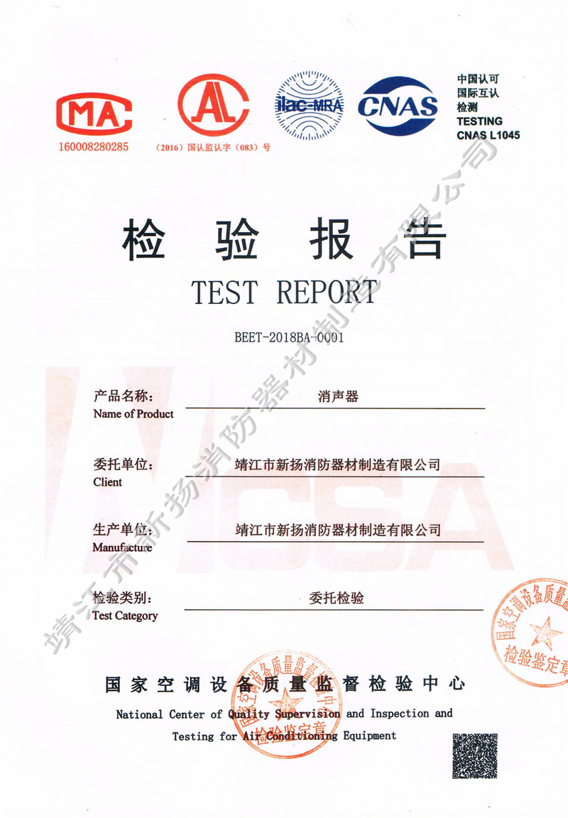 檢測(cè)報(bào)告 金屬外殼消聲器