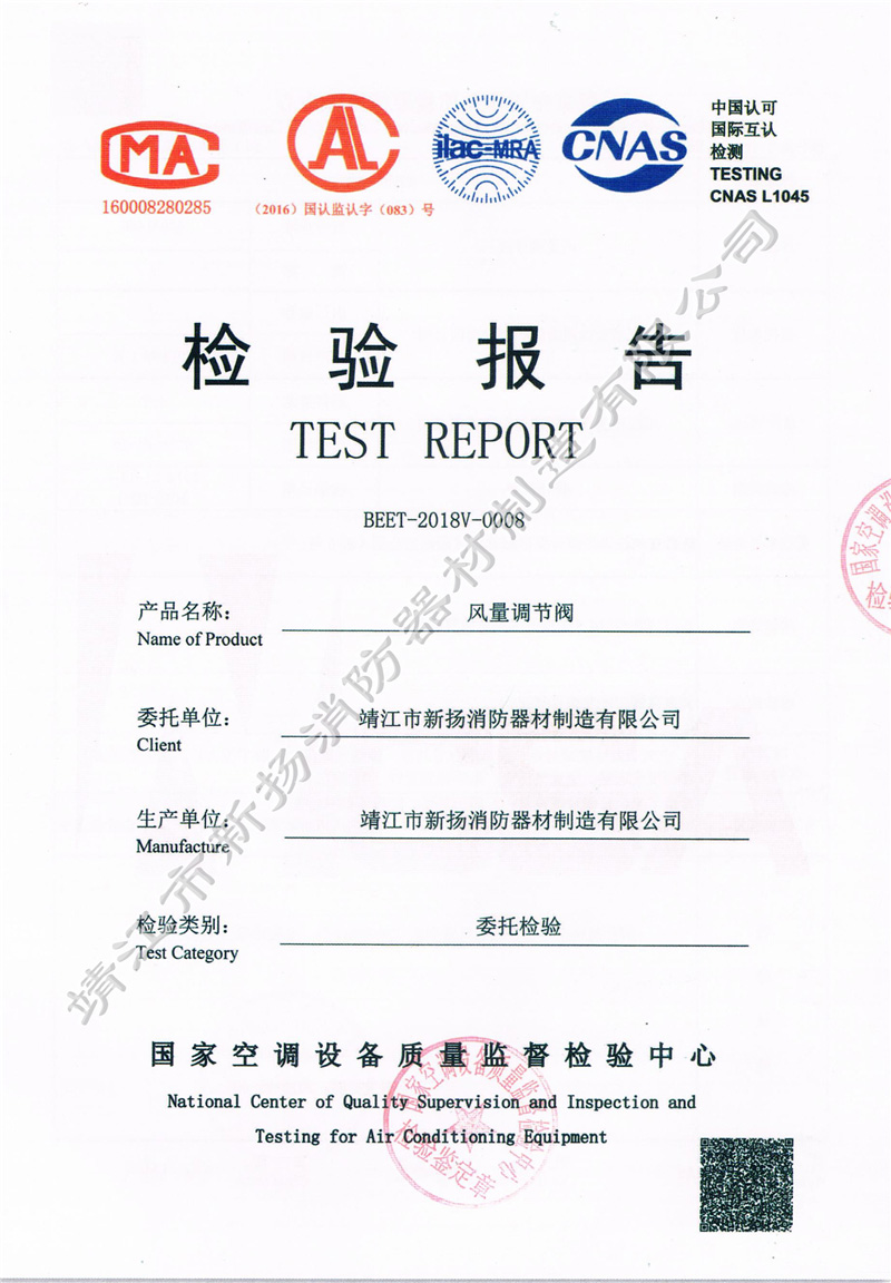 檢測(cè)報(bào)告 風(fēng)量調(diào)節(jié)閥